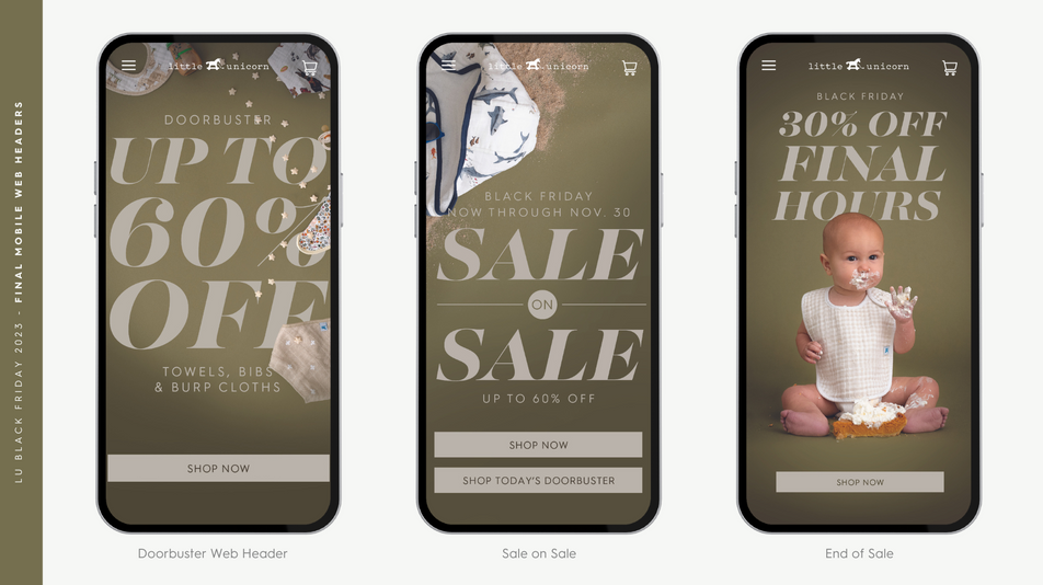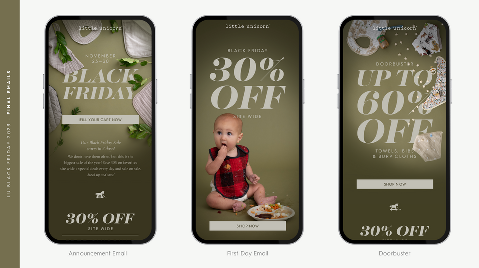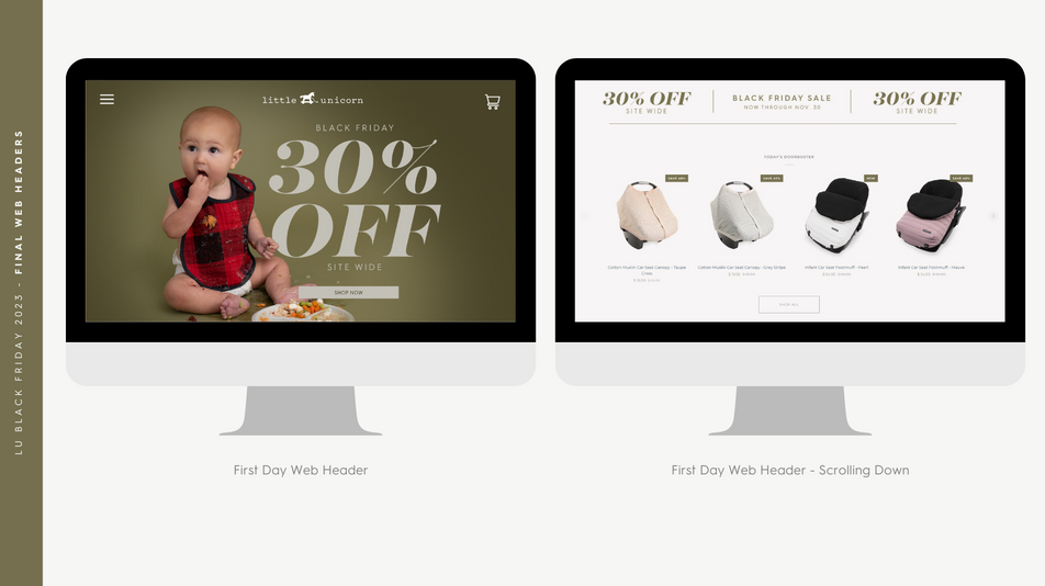 As a graphic designer, one of my recent projects was creating visuals for a Black Friday marketing campaign for Little Unicorn. The campaign included social media posts, meta advertisements, email headers, and website banners.